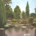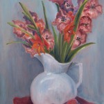My many teachers had different approaches to painting, and my painting methods are an amalgam of them all. I use a variety of media – watercolor, charcoal, graphite, oil pastel, and oil paint, but my preference is oil painting. I like the intense colors that can be achieved with oil paint. Painting brings back great memories of our times living and traveling in Europe. My husband always took photos for me to use as references for my painting, and these I often use in my painting today. I also enjoy painting flowers and other still life because of their color.